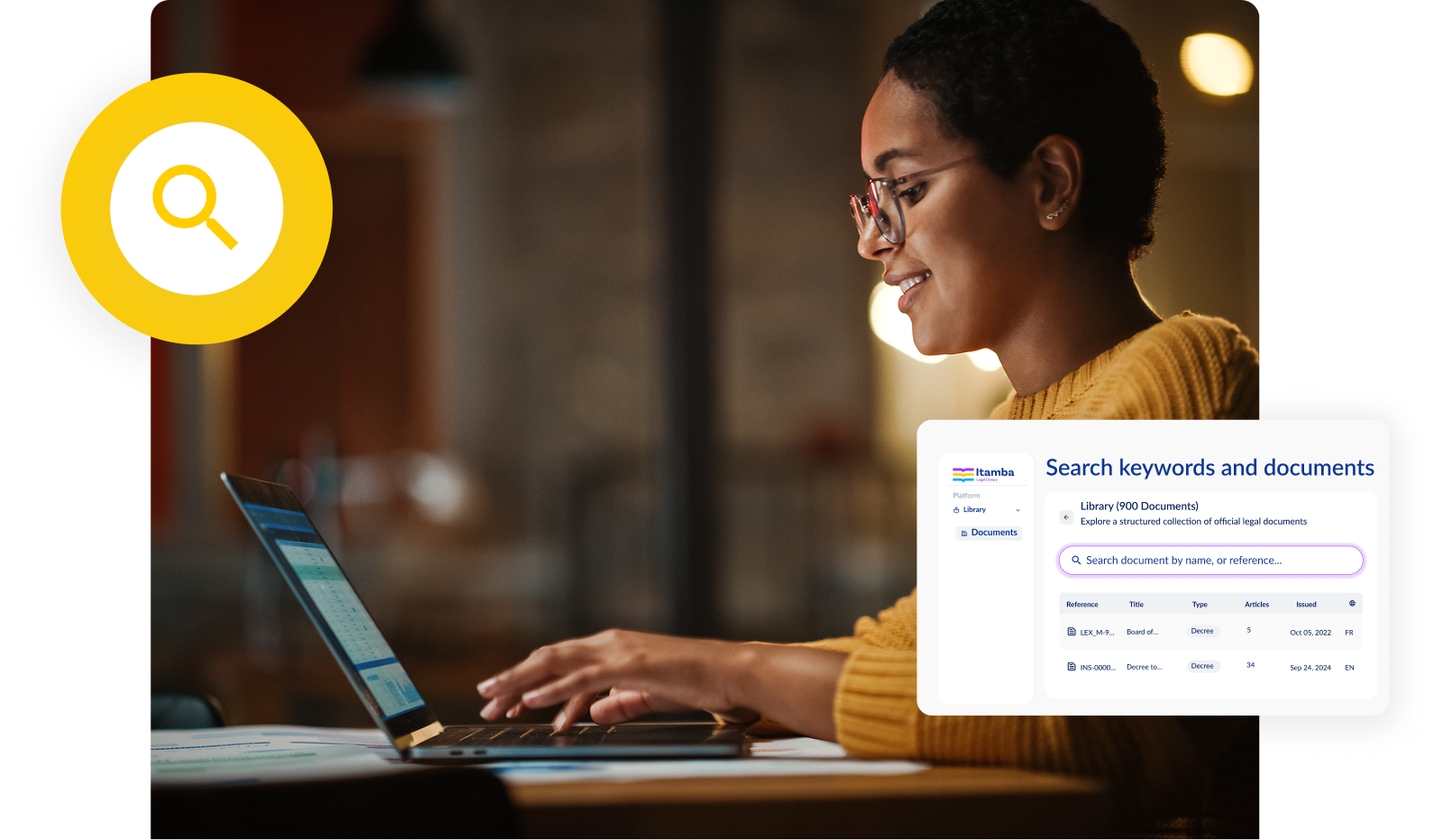 To find legal information in Itamba Legal Library, simply enter a keyword in the search bar and explore the different results. You can also browse the different catalogs to explore the documents belonging to the catalog that interests you.